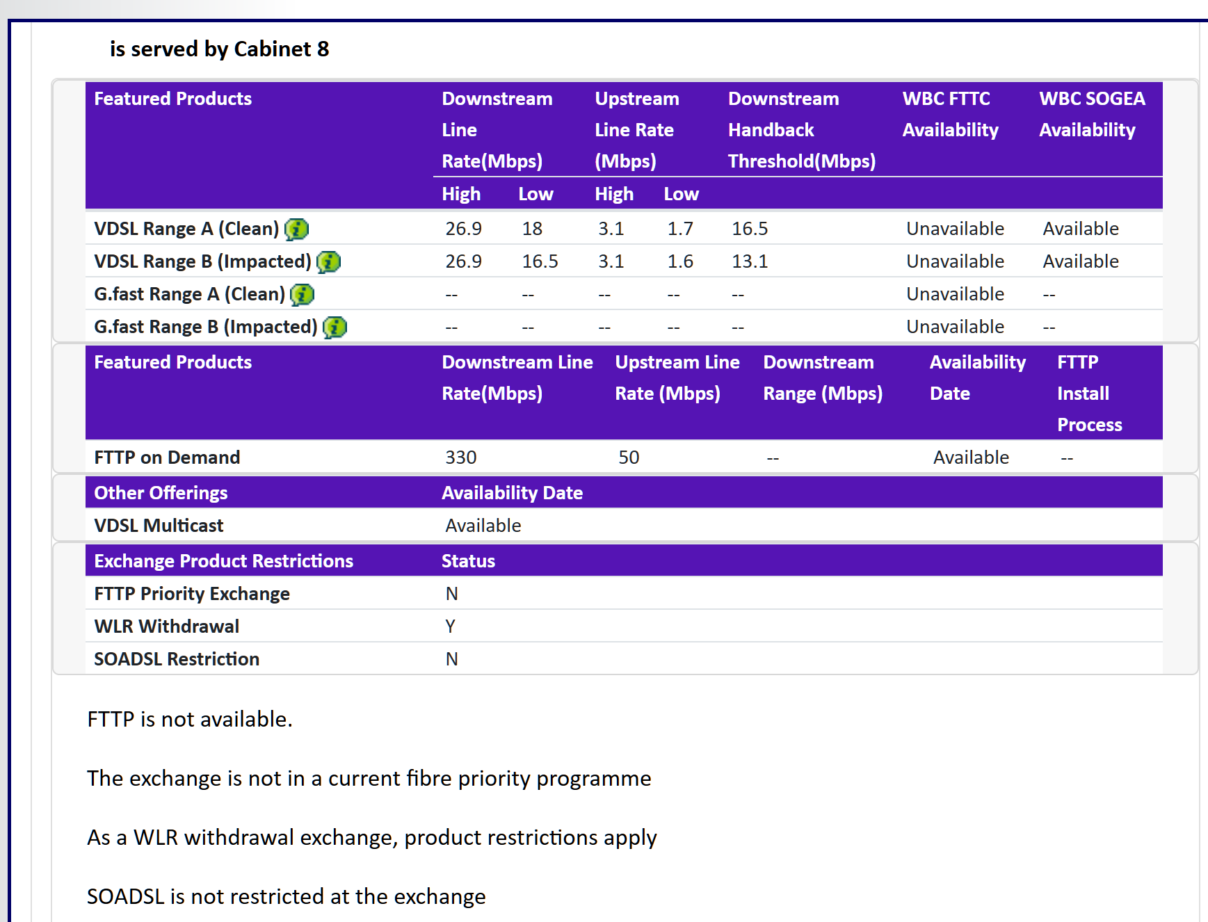 Our cabinet says its not available but SOGEA is. I'm confused now as i thought we had VDSL FTTC ?