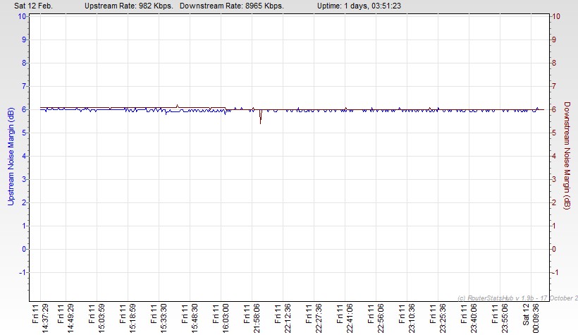 Charts attached. The drop at 15.30ish on the noise margin was a phone call received on the landline.
