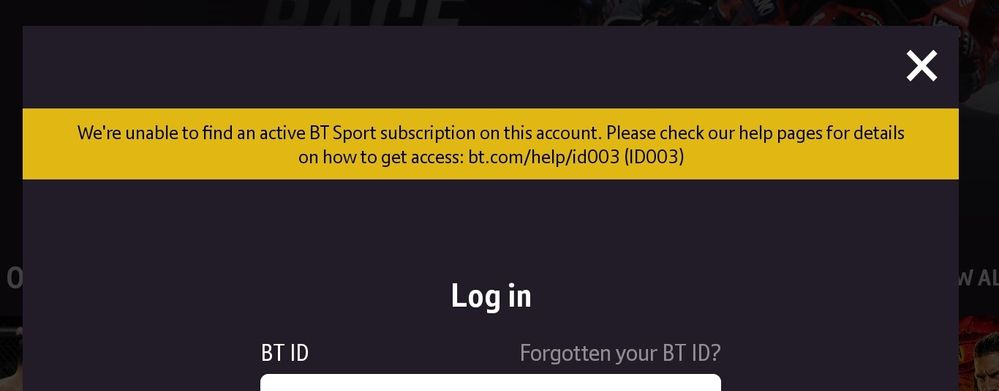 "We're unable to find an active BT Sport subscription on this account"