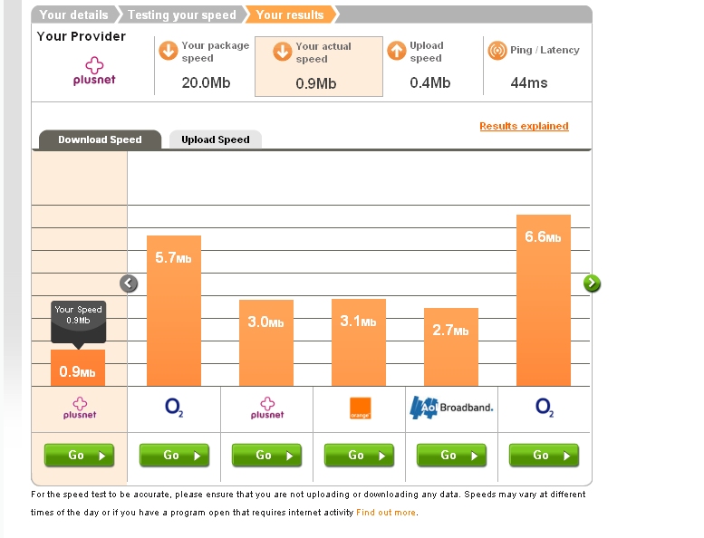 ok, will do a speed test on the thingy site. Hang on.........might have just done better than ISDN