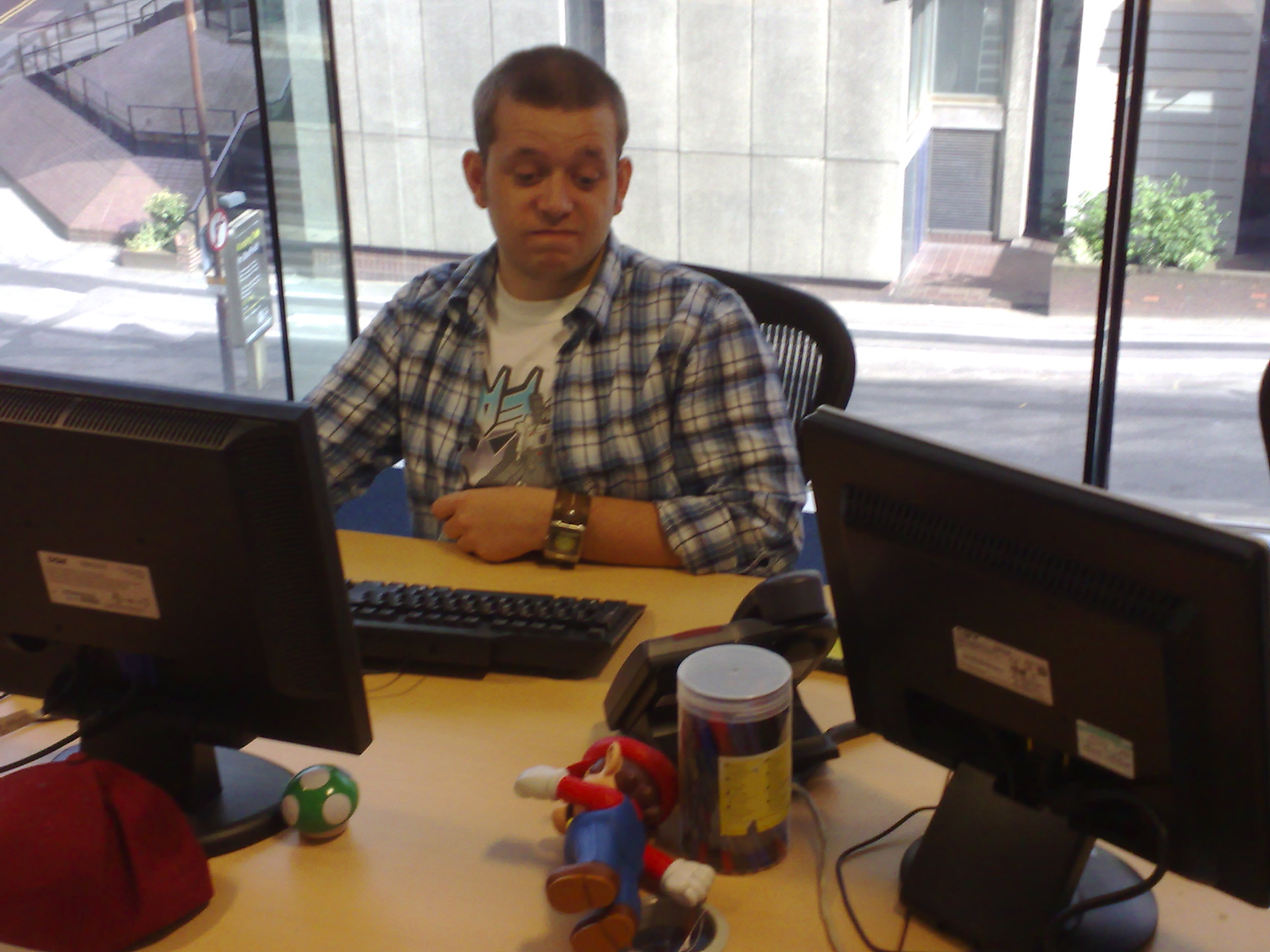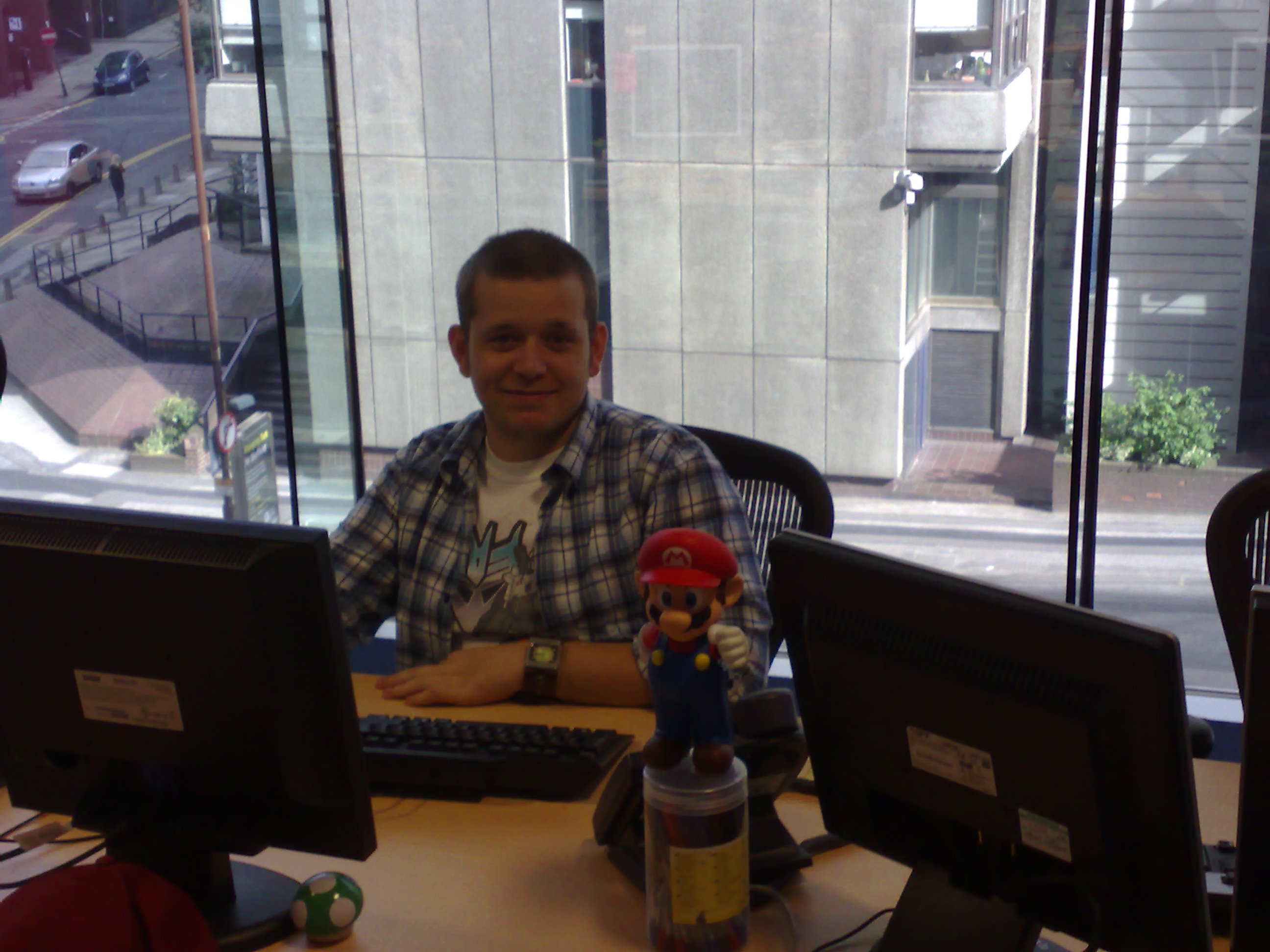 Rich is back from his long raving weekend in Germany, he’s dived right back into things and has been catching up with last weeks events. Dave and Ian have both involved with induction training and various meetings. I’ve been working through my task list, doing some work on homephone calls and telling Mr Bailey off for repeatedly hitting my Mario figure. (Ed: James B has kindly provided some photos of this event both before and after.)